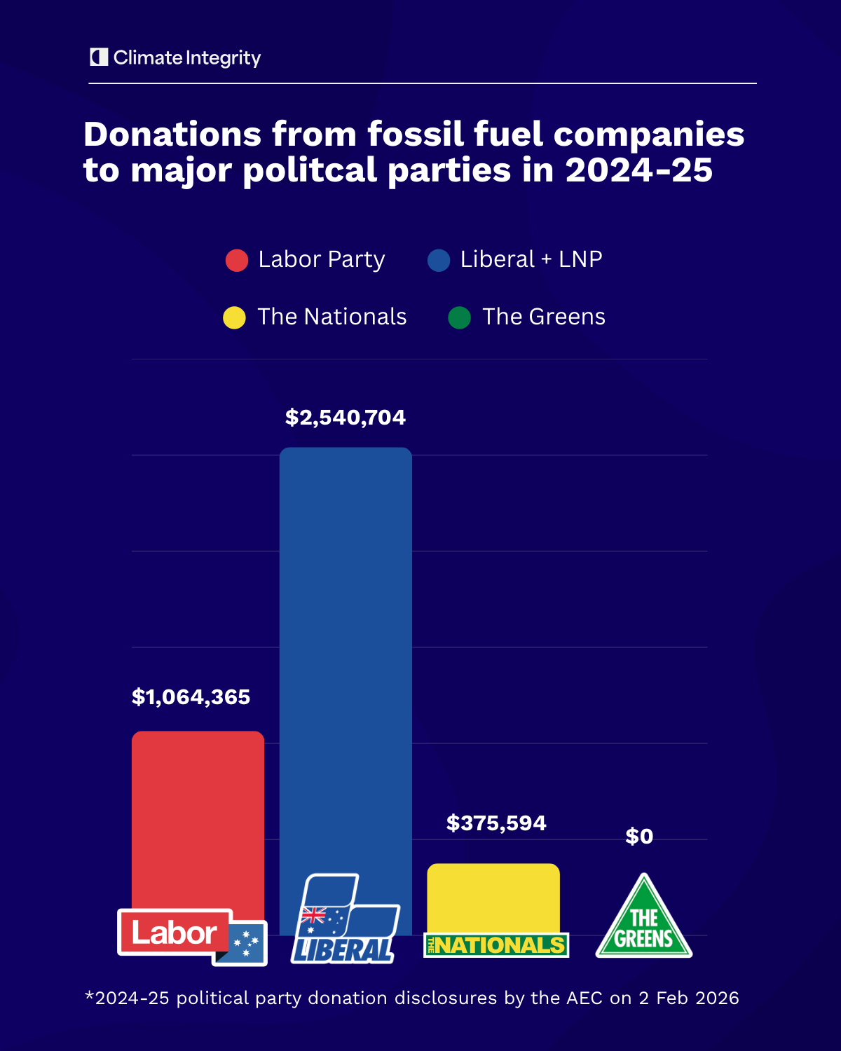 Climate Integrity has also undertaken a much deeper dive into fossil fuel donations to political parties in the lead-up to the 2025 Federal Election.