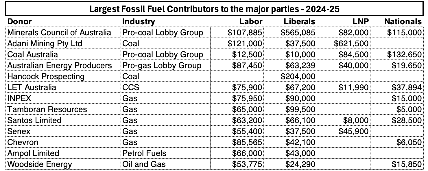 All up, fossil fuel interests gifted almost $4 million to Australia’s major parties.